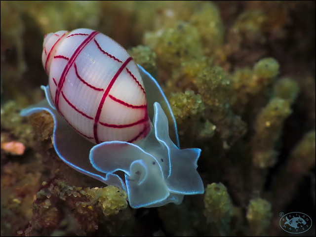 Creature FeatureBullina lineata (11/23/25)This white bodied, semi-shelled sea snail seems to glow along its blue-tinged edges. Its thin red banding reminds predators to look, but not touch. Our friend can be found along the tidal and subtidal Indo-Pacific, possibly on the hunt for polychaete worms. |